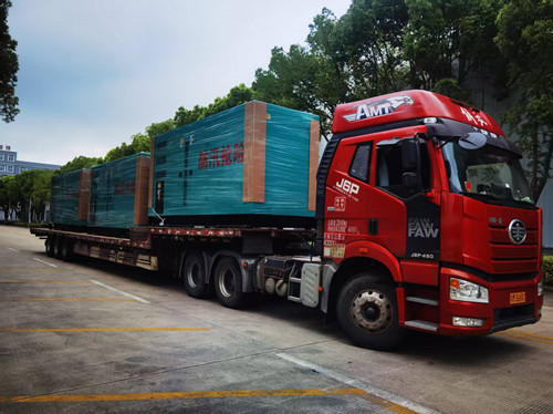 河北某市政單位在我司選購3臺600kw靜音箱式柴油發(fā)電機組,車間技術(shù)人員已安裝調(diào)試完畢,如下圖裝車準(zhǔn)備運往目的地:
