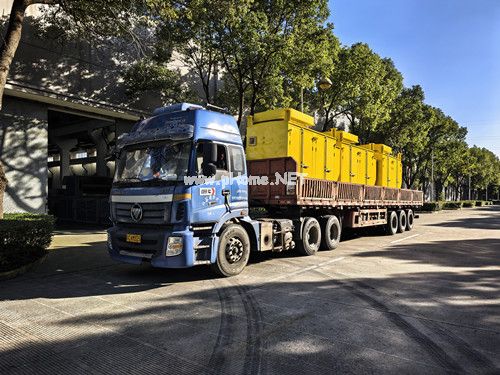 多臺150KW港機專用柴油發電機組經由車間技術工人安裝調試后裝車發往目的地,見下圖: